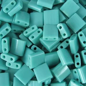 Cc412 – perles Miyuki tila opaque turquoise green 5mm. Découvrez les perles MIYUKI Tila sans perdre de temps ! La forme plate et carré de ces perles en verre ainsi que les deux passages de fil parallèles vous offrent la possibilité de créer à l’infini ! Jouez sur les formes, les couleurs. Assemblez selon vos besoins pour obtenir d’incroyables créations !