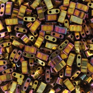 cc462 -Miyuki Half Tila Perles Met Gold Iris 2.5mm. Diamètre du trou : 0.8mm. Découvrez les perles MIYUKI Tila sans perdre de temps ! La forme plate et carré de ces perles en verre ainsi que les deux passages de fil parallèles vous offrent la possibilité de créer à l’infini ! Jouez sur les formes, les couleurs. Assemblez selon vos besoins pour obtenir d’incroyables créations ! Ces perles en verre sont fabriquées au japon par la marque Miyuki fabriquant des très populaires Delica®. La qualité exceptionnelle des perles Miyuki Tila vous garanti une uniformité de forme et de couleur.