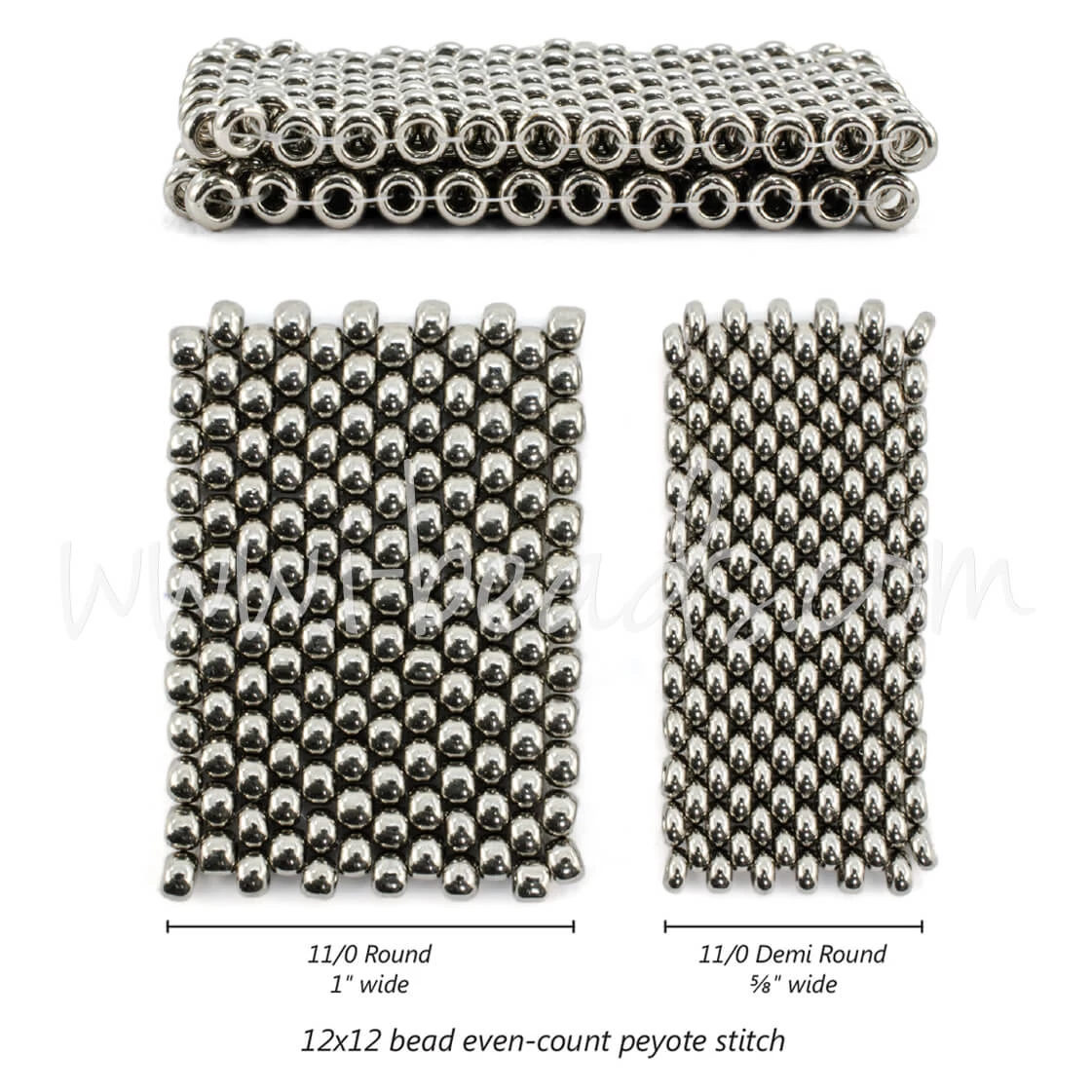 Découvrez les dernières nouveautés Toho! Toho demi-round est un tout nouveau type de rocailles rondes. Ces rocailles sont plus fines que les traditionnelles rocailles mais elles gardent le même diamètre de passage de fil. Cette nouvelle forme permet lélaboration de créations originales et complexes.