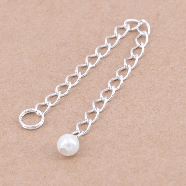 Chaine d’extension argent 925 avec perle nacrée 60mm.