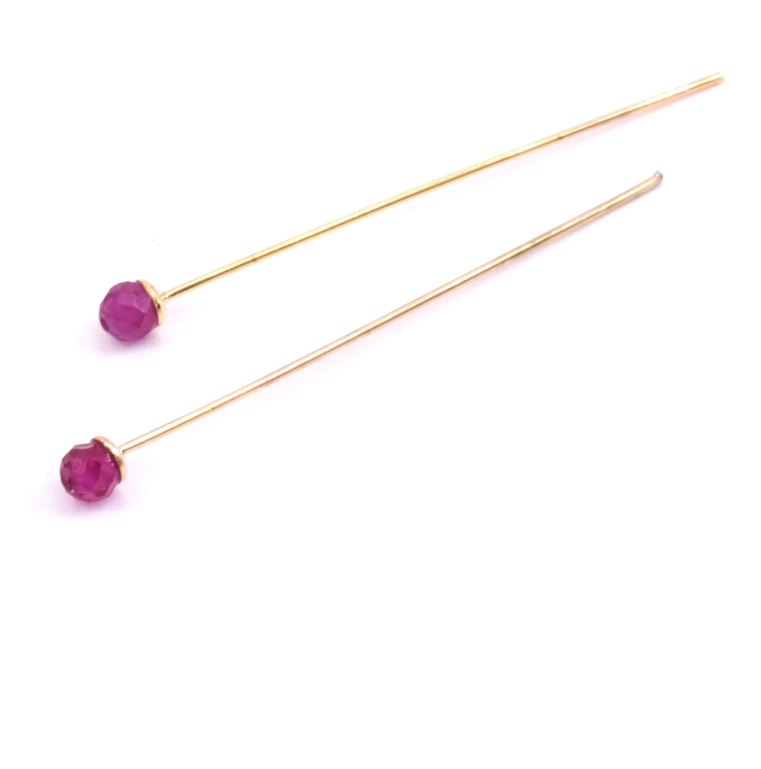 Clous Tiges Doré Or Fin Qualité 4,4cm Avec Jade Rouge à Facettes 3,5mm (2)