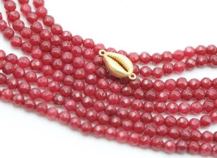 Jade naturel teinté GRENAT à facettes, 4mm, trou 1mm env: 90 perles (vente 1 rang)