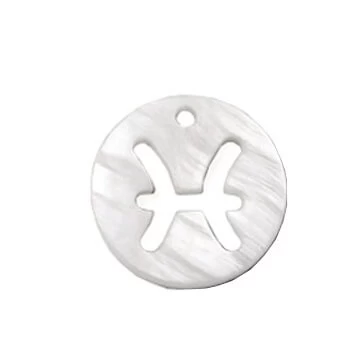 Pendentif Charm Rond Nacre Blanche Signe Astrologique Poissons 12mm (1)