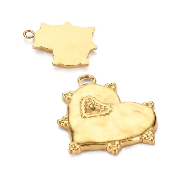 Pendentif Coeur Perlé Cabossé Acier Inoxydable Doré – 17x18mm (1)