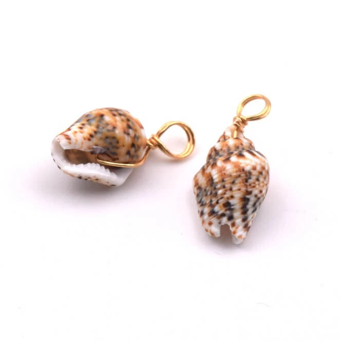 Pendentif Coquillage Naturel 15-20mm Et Laiton Doré – Trou 4mm (2)