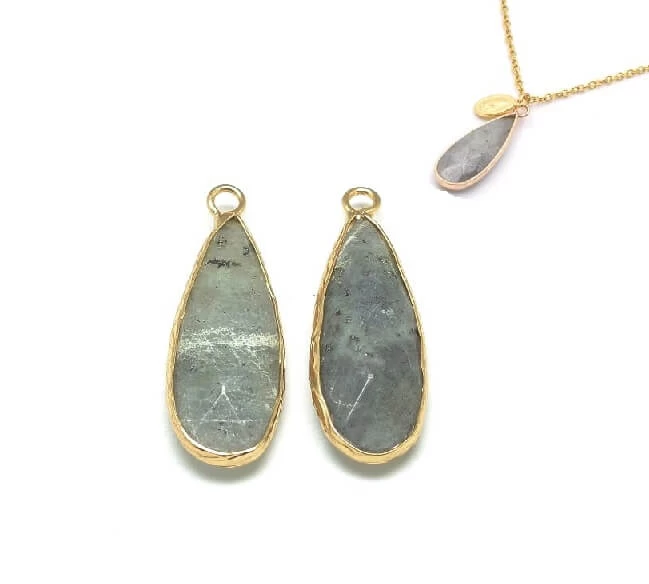 Pendentif En Labradorite Sertis Laiton Or 32x11mm (1)