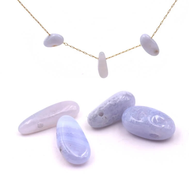 Pendentif goutte en agate bleu 11-20×6-8mm – Trou: 1mm. La taille et la couleur de chaque perles varient.