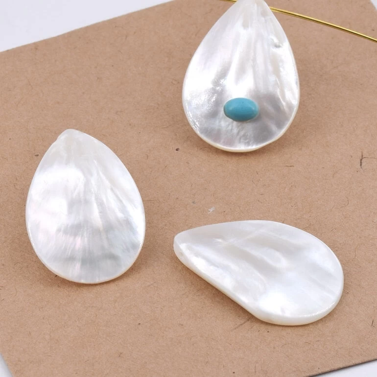 Pendentif Goutte Nacre Coquillage Blanc Crème 30x21mm (1)