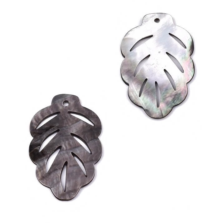 Pendentif nacre coquillage gris noir feuille 35x22mm Trou : 1.6mm