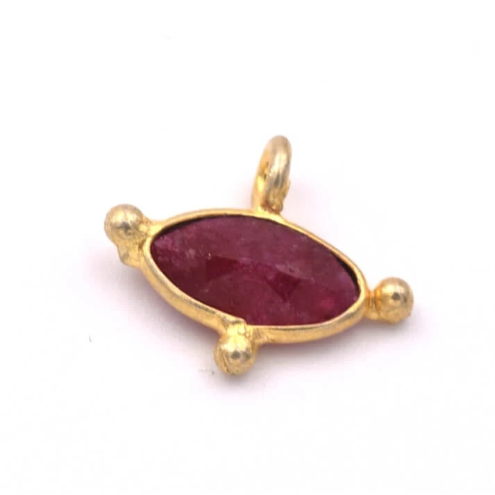 Pendentif oeil ovale Rubis serti argent 925 doré qualité 12x10mm. Trou : 1.5mm.