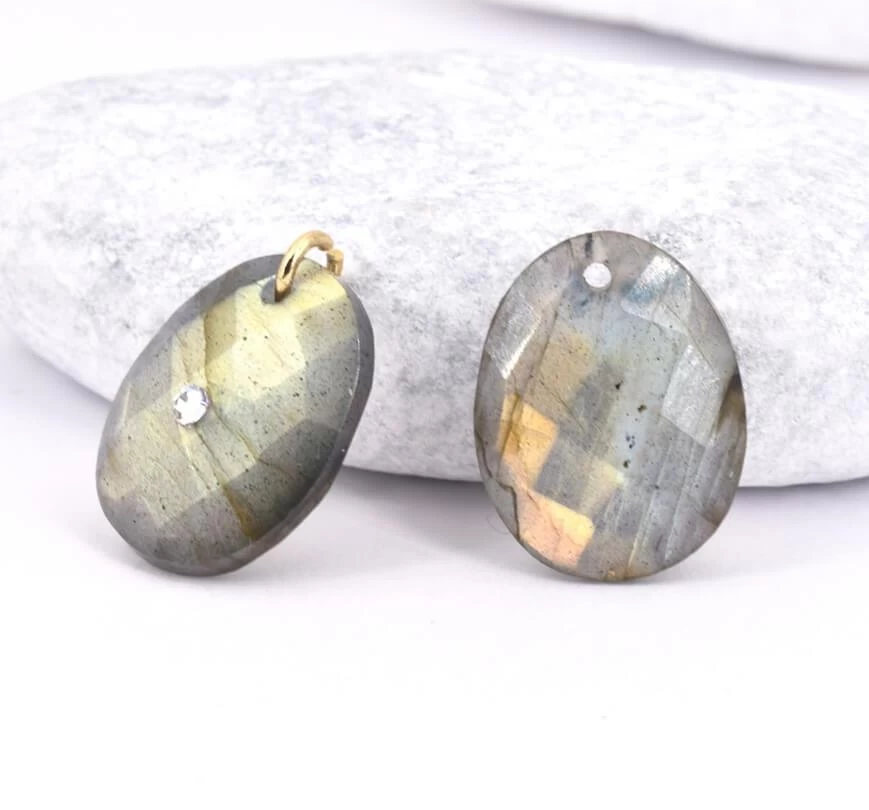 Pendentif Perle Goutte Labradorite Ovale Facettes 19x15mm-0.9mm. Cette pierre est très joliment taillée avec de nombreuses facettes en forme de losange. Pierre vendue seule sans accessoire