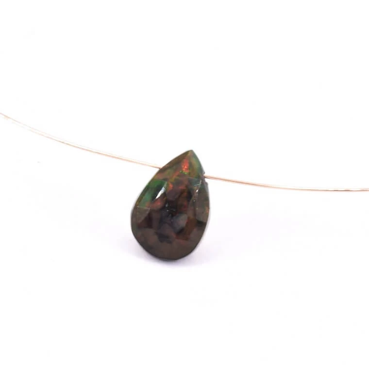 Pendentif perle goutte poire facetté Opale Ethiopienne 8x7mm. Trou : 0.4mm.