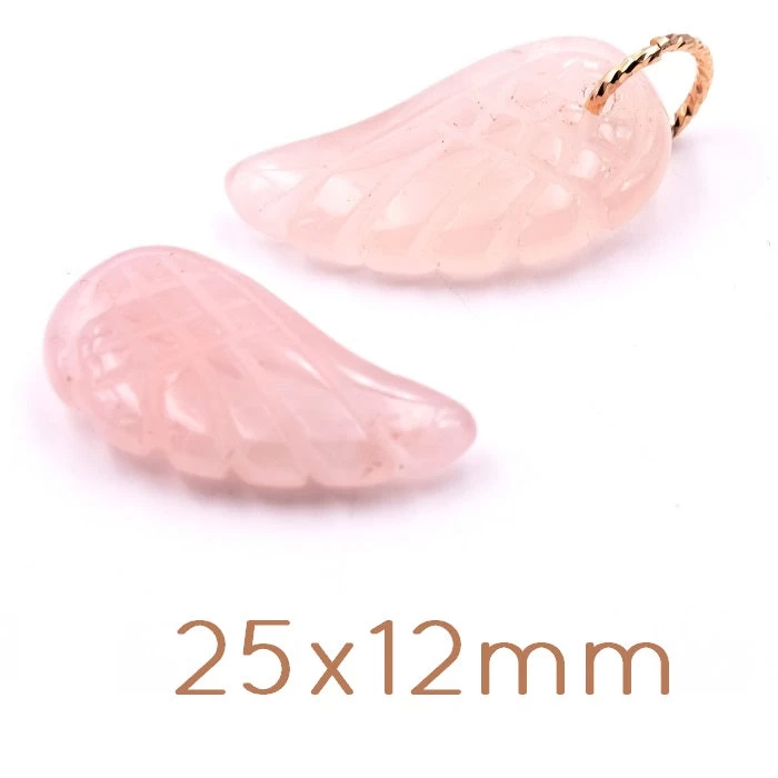 Pendentif Sculpté Aile en Quartz Rose 25x12mm, Trou 1,2mm.