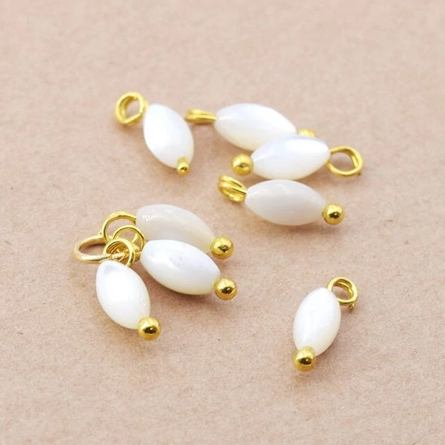 Pendentifs Charms en Nacre Blanche Crème avec Tige Laiton Doré -7x4mm.