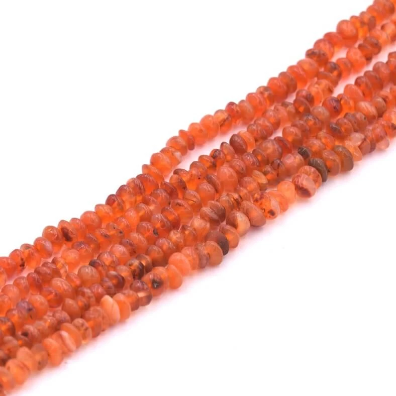 Les perles bouton en cornaline 4-5×2-4mm avec un trou de 0.5mm sont parfaites pour votre prochain projet de bijoux. Ce fil de 33 cm environ vous offre beaucoup de possibilités créatives. Cette pierre aux tons oranges et jaunes sont parfaits pour les conceptions de bijoux.