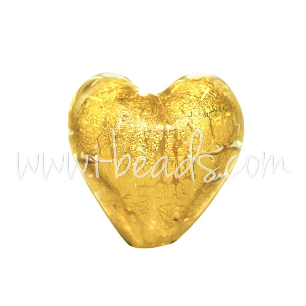 Perle De Murano Coeur Cristal Et Or 10mm (1)