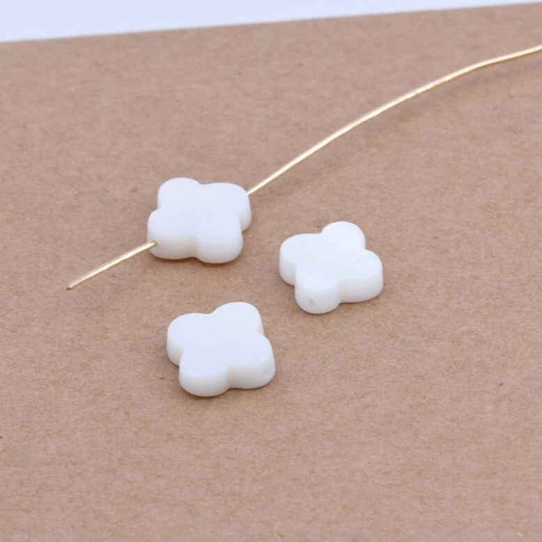 Perle en nacre blanche naturelle trèfle 10mm – trou : 0.8mm.