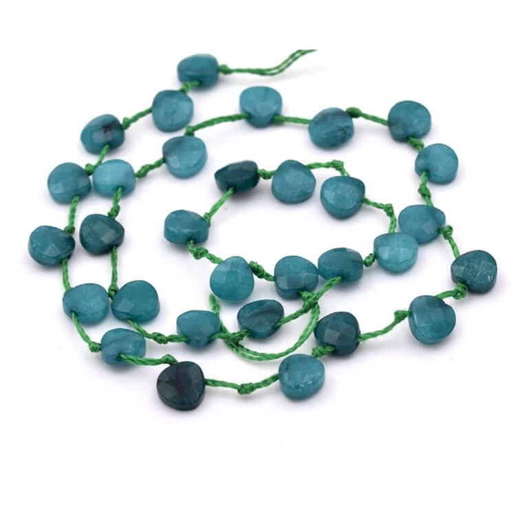 Perle pendentif gouttes à facettes jade teinté bleu vert 7x7mm – Trou: 0.5 mm. Le fil contient environ 30 perles.