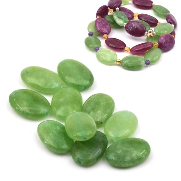 Perle ovale plate jade teinté vert 18-13mm – trou: 1mm.