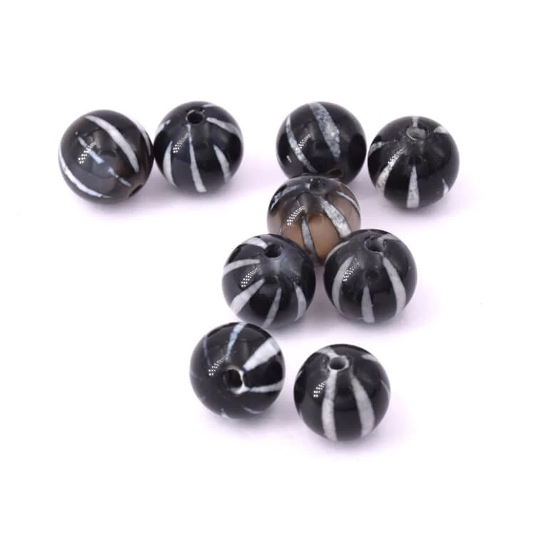 Perle Ronde Agate Grise Rayée Blanche 8mm – Trou 1mm (10)