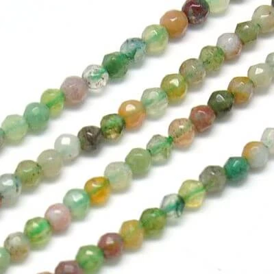Perles à facettes en agate indienne, rondes, environ 1.8mmx0.5 – 180 /fil -39cm (1 rang)