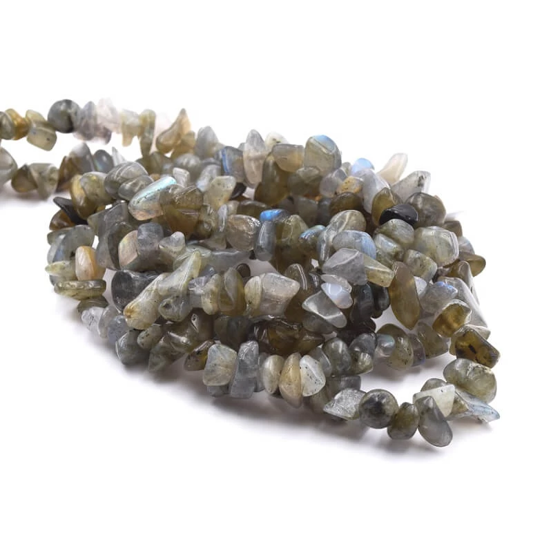 Perles Chips Labradorite 5-13mm – Trou: 0,8mm. Les perles sont vendues par fil mesurant environ 85 cm.