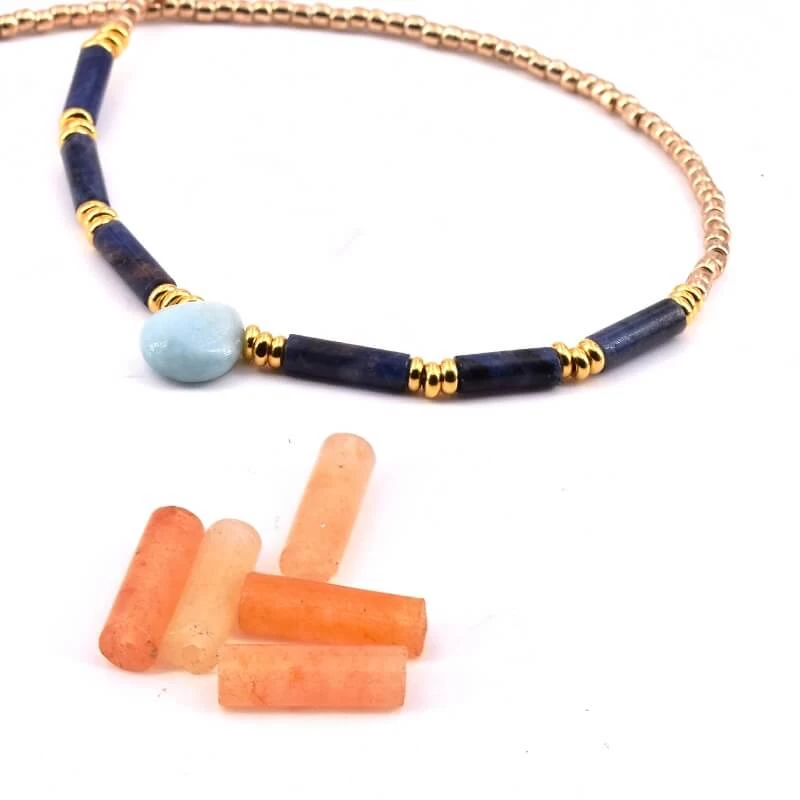Perles Cylindres Aventurine Jaune 10x3mm – Trou : 0.8mm. En raison du caractère naturel de la pierre, chaque perle est différente.