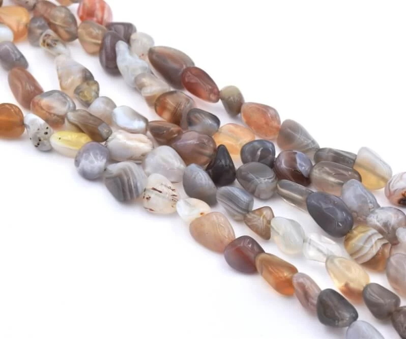 Perles Forme Nugget Arrondi Agate Rayée App 5-10mm, Trou 0.8mm (1 Rang)