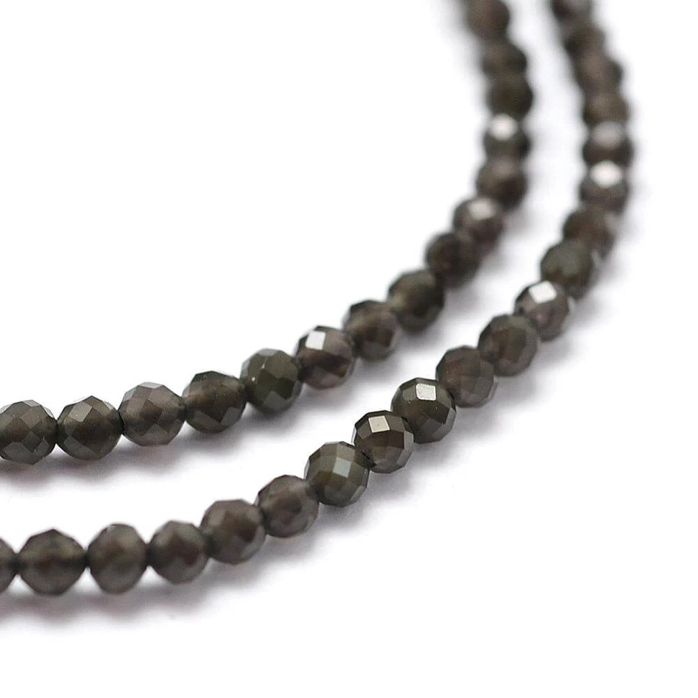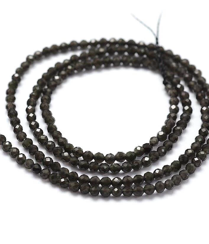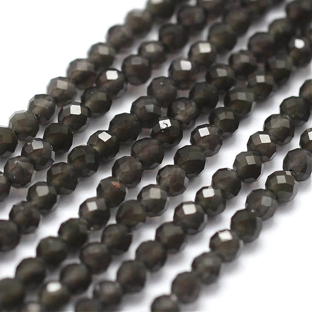 Perles Noires Obsidienne à Facettes, 2mm, Trou: 0.5mm, 165 Pcs/fil, (38 Cm) (1)