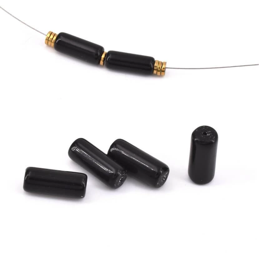 Perles Obsidienne Tube Cylindre 15x5mm – trou 0.9mm. Ces perles sont idéales pour être assemblées avec des perles Heishi en métal et autres pierres gems