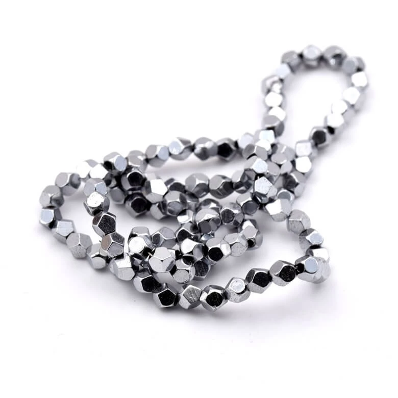 Perles Polygone En Hématite Synthétique Argenté 4mm (1 Fil-38cm)