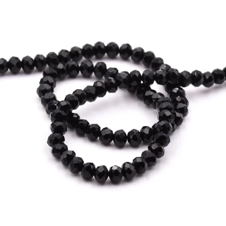 Perles Rondelles Facettes Jade Teinté Noir 4×2.5mm – Trou: 1mm (1 Fil-34cm)