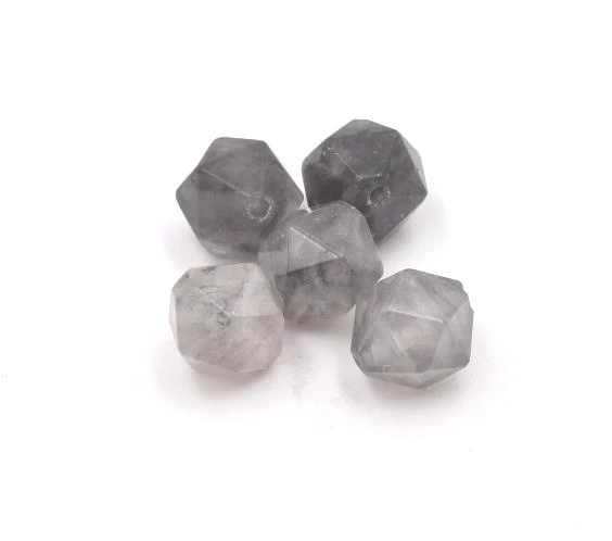 Polygone, Facette, Perles De Quartz Naturel Grise, 10×9 Mm, Trou: 1 Mm (X3 Unités)