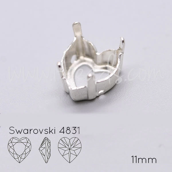 Serti à Coudre Pour Swarovski Coeur 4831 11mm Argenté (2)