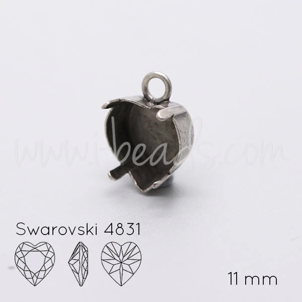 Serti Pendentif Pour Swarovski 4831 Coeur 11mm Argenté Vieilli (1)